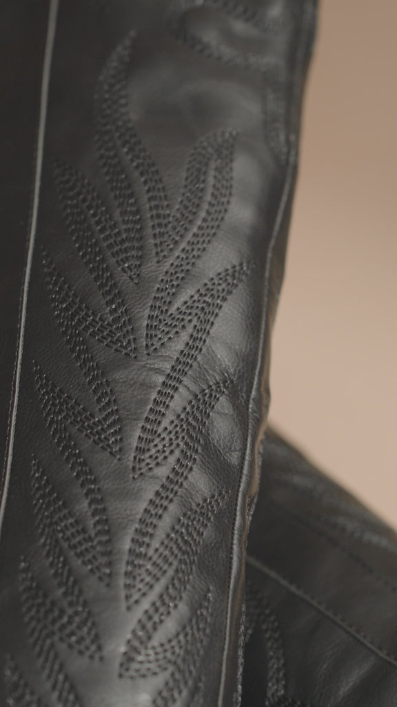 Classic western embroidery on a cowboy boot that's been raised to the knees. Perfect for festivals, country concerts, or elevating any outfit