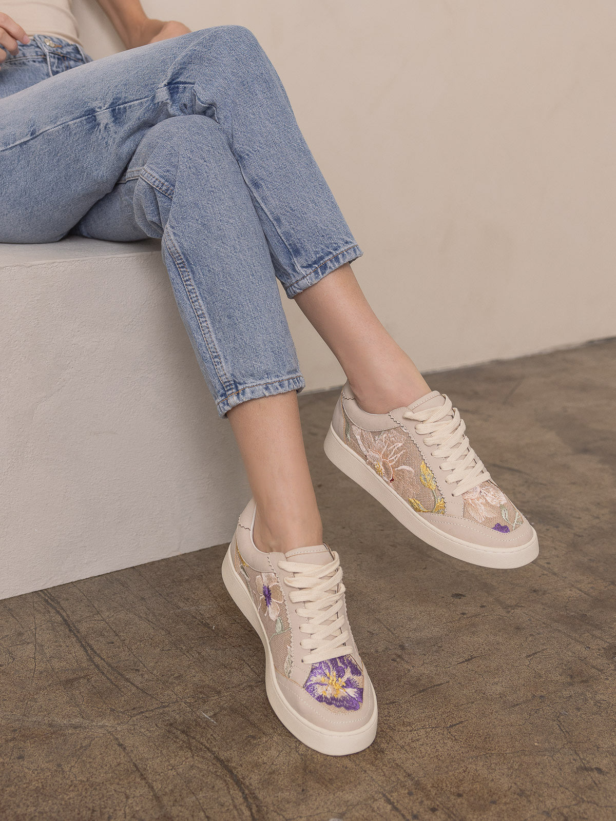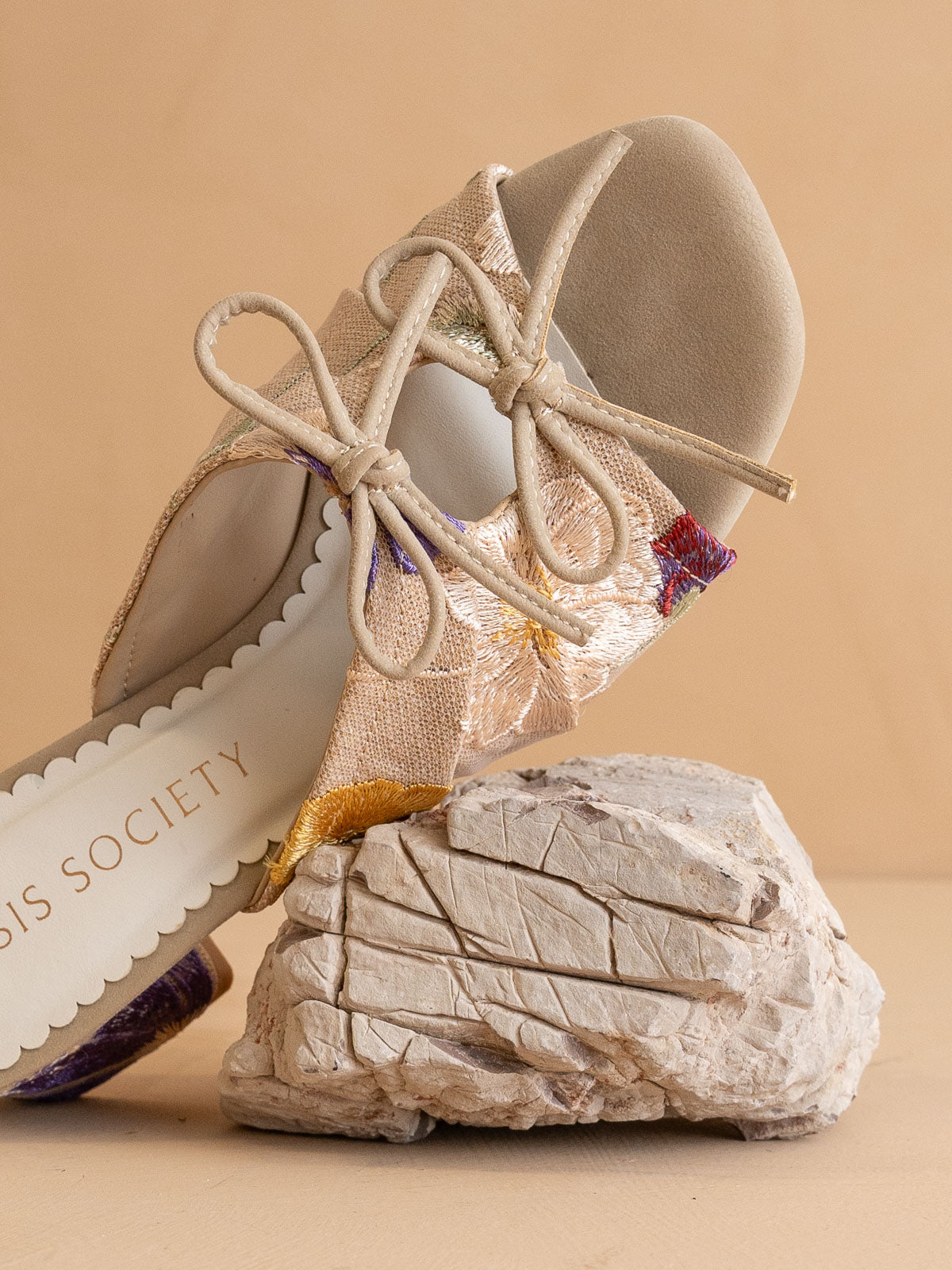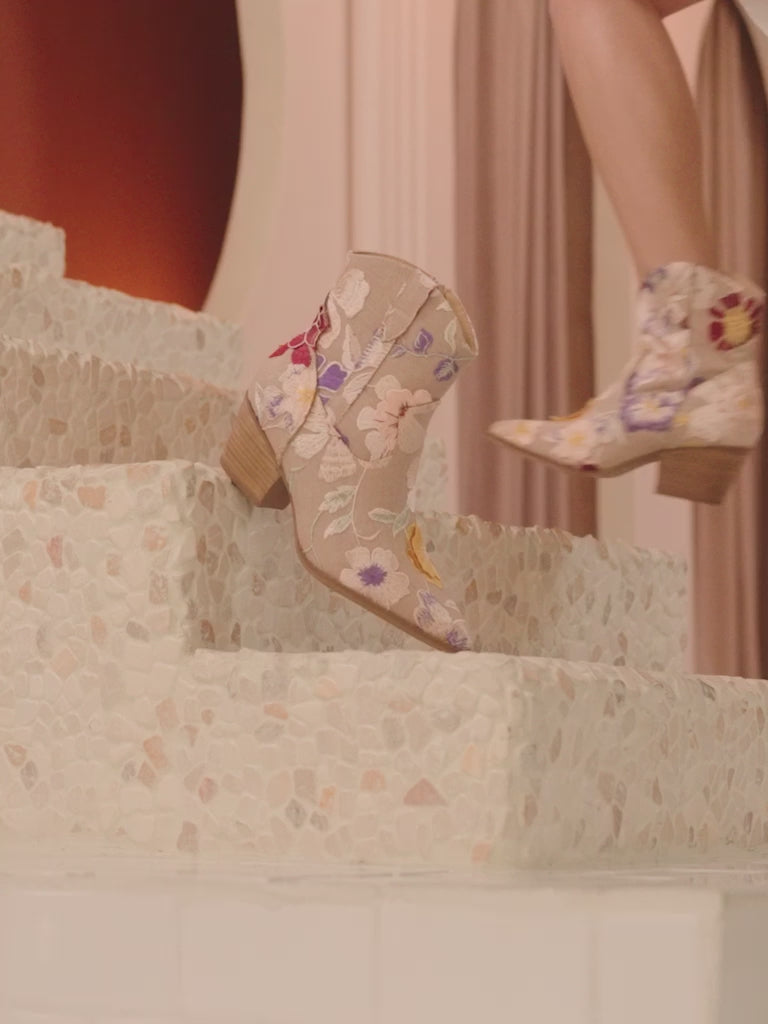 Every pair begins with handpicked, premium textiles chosen by our design atelier. From the embroidered floral appliqué to the soft-touch linings, each material is selected for its texture, durability, and statement-worthy finish.