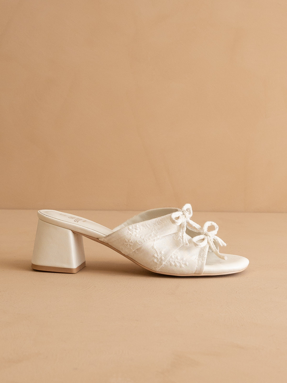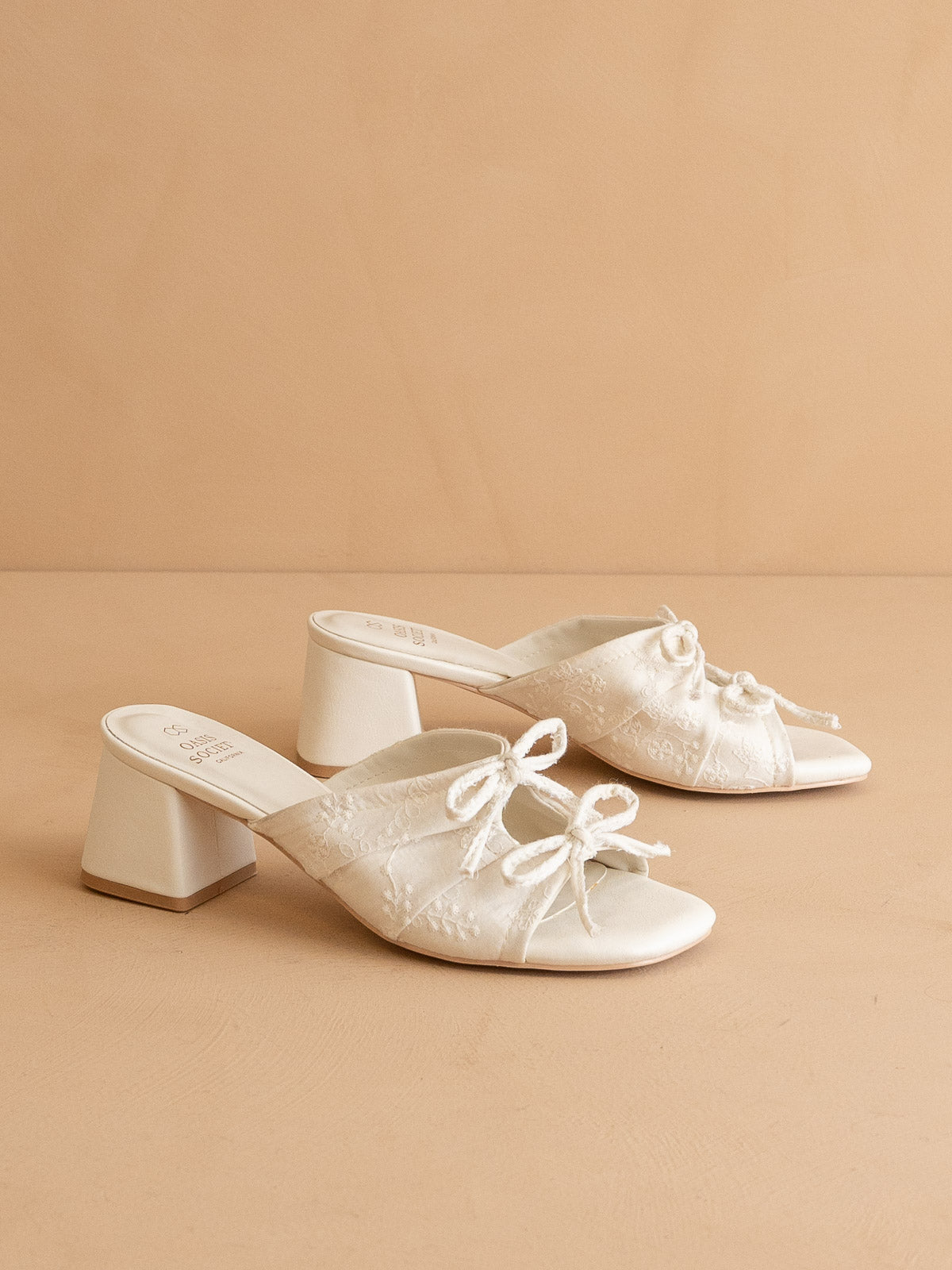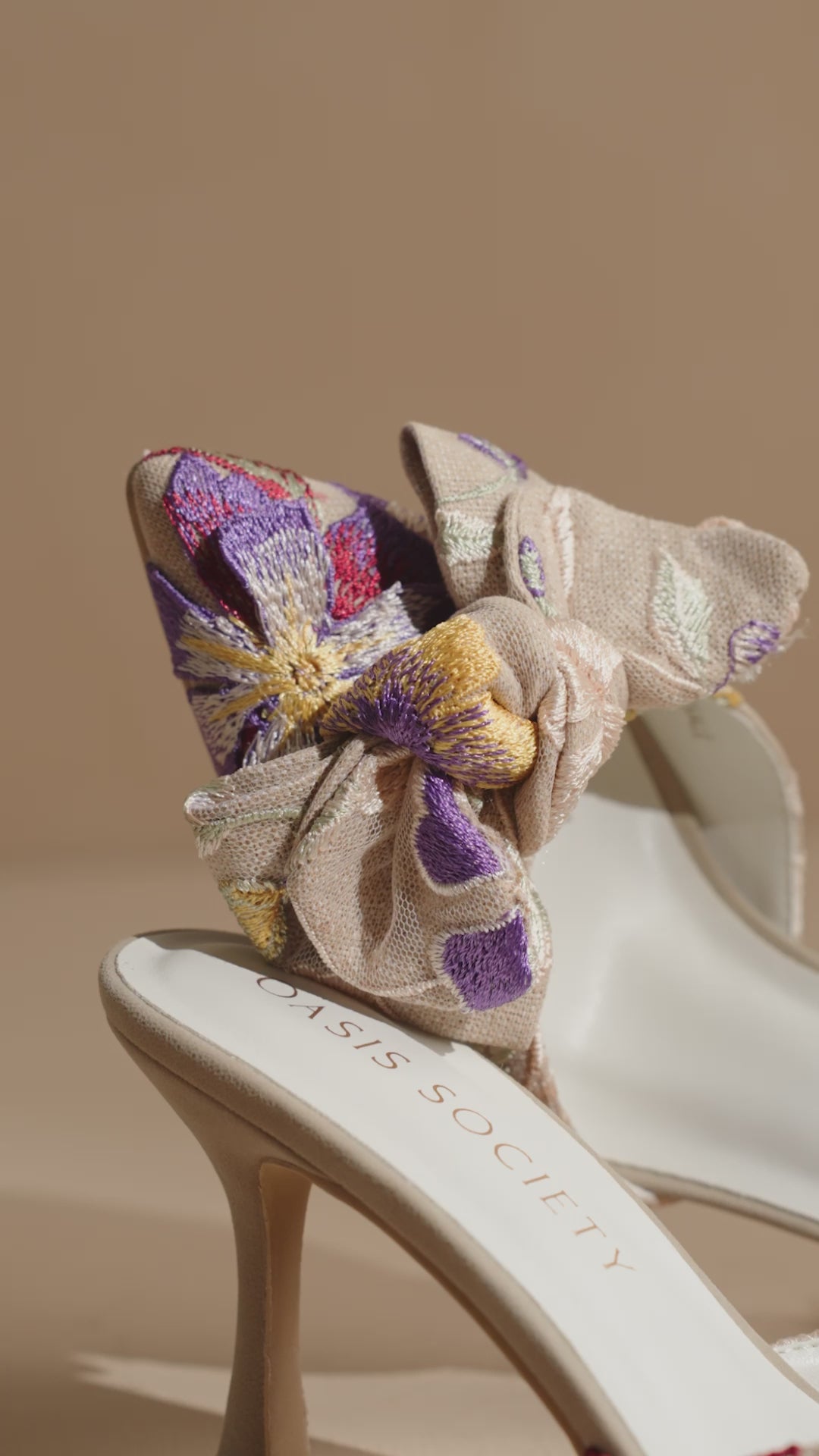 The ultimate romantic low heel – adorned with charming bows and a touch of sass.