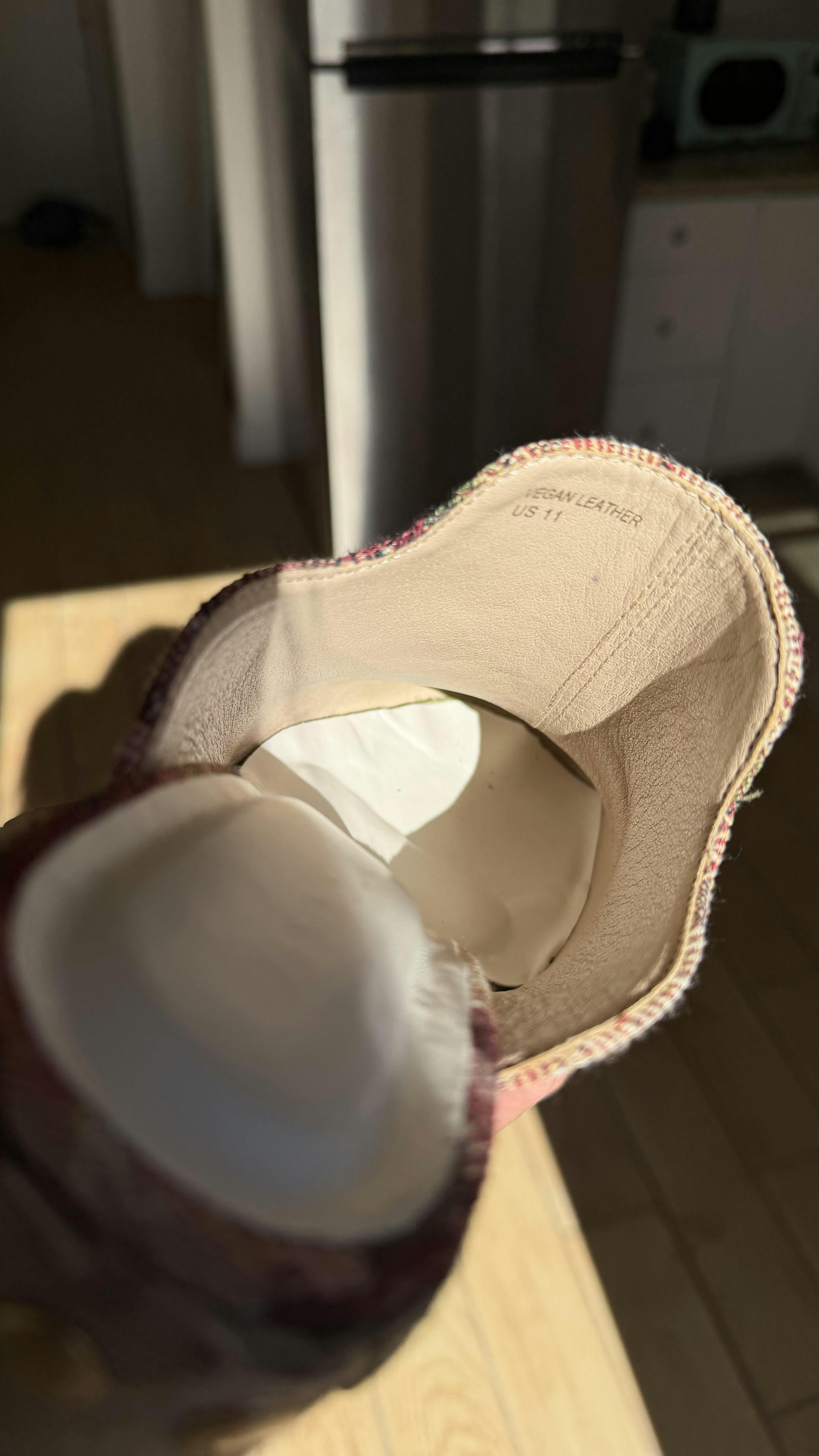 Each pair of is crafted with intricately woven vintage-inspired tapestry, making every design one-of-a-kind with unique pattern placement.